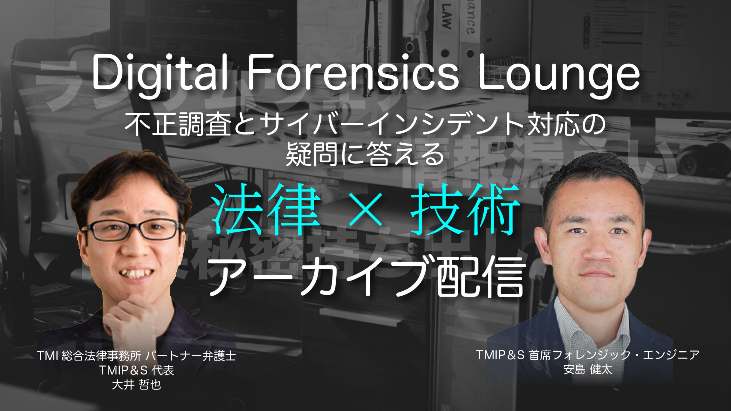 未分類 【アーカイブ配信】Digital Forensics Lounge ~不正調査とサイバーインシデント対応の疑問に答える~ 毎月配信のシリーズセミナー「Digital Forensics Lounge」のアーカイブ配信です。
