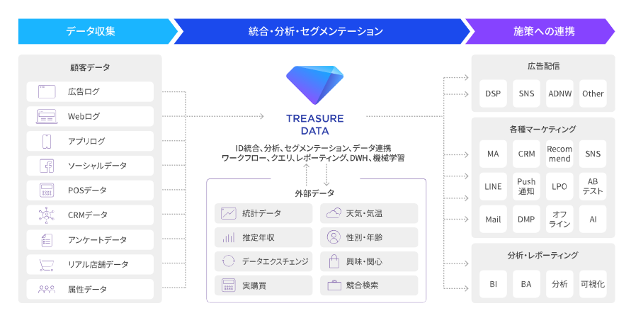 カスタマーデータプラットフォーム「Treasure Data CDP」により企業内のデータを統合し、消費者のインフォームドコンセントも含めたデータのガバナンスを管理する機能を提供